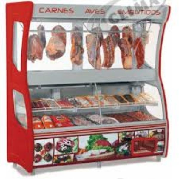GeloparRefrigeração e exposição de carnes (não congeladas) Temperatura: +1° a +7°C Refrigeração: Estática com 2 serpentinas aletadas e 1 serpentina embutida na base Degelo: Manual Controle de Temperatura: Termostato Termometro analógico Depósito refrigerado Iluminação: Fluorescente (interna na parte superior e na parte inferior), com interruptor Prateleira: 1 nível, aramada, regulável e inclinável Pés reguláveis Portas: Cegas na parte inferior e vidros deslizantes na parte superior Revestimento externo chapa cinza e interno chapa branca 3 Opções de Cores: Cabeceira cinza, adesivo avermelhado (padrão), Cabeceira vermelha, adesivo avermelhado (opcional) e Cabeceira azul, adesivo acizentado (opcional) Tendal duplo de alumínio Ganchos para tendal Base com estrado aramado Laterais com vidro duplo Vidros sujeitos a condensação da umidade do ar Obs: As bandejas em aço inox 430 para exposição na base acompanham o produt