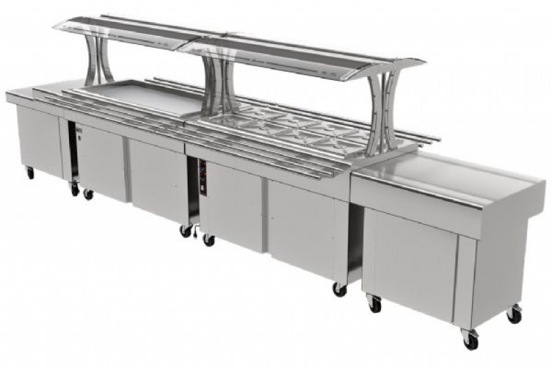GastromaqCaracteristicas MÓDULO AQUECIDO - BTE-08 FLY - BTE-10 FLY - BTE-12 FLY: Balcão Térmico fabricado em Aço Inox 430 escovado. Disponível nas versões 8, 10 e 12 cubas de 1/2 GN. Sistema de aquecimento por banho-maria, controlado através de termostato de 20ºC até 120ºC e conta com dreno para água. Fechamento superior em vidro temperado com calha central em Aço Inox 430, lâmpadas fluorescentes de 15W para iluminação do balcão. Disponível também nas versões 127V ou 220V. Equipado com rodízios de 3" com trava para fácil locomoção do produto. MÓDULO REFRIGERADO - BTR-08 FLY: Balcão térmico fabricado em Aço Inox 430 escovado. Pista refrigerada em alumínio com controle de temperatura eletrônico e isolamento térmico PU expandido. Fechamento superior em vidro temperado com calha central em Aço Inox 430, lâmpadas fluorescentes de 15W para iluminação do balcão. Disponível também nas versões 127V ou 220V. Equipado com rodízios de 3" para fácil locomoção do produto. MÓDULO SUQUEIRA - MSB: Módulo Suqueira/Balança serve como apoio para balcões térmicos. Base fabricada em AISI Inox 430 com tampos em granito verde ou amarelo.Possui rodízios de 3" com trava, portas e prateleiras para acomodar itens diversos. MÓDULO TALHERES - MTP: Módulo Talheres/Pratos serve como apoio para balcões térmicos. Base fabricada em AISI Inox 430 com tampos em granito verde ou amarelo. Possui cubas para talheres, desnível para pratos, rodízios de 3" com trava, portas e prateleiras para acomodar itens diversos. Especificações Técnicas MÓDULO BTE-08 FLY DIMENSÕES DAS CUBAS - 325x265x100 NÚMERO DE CUBAS - 08 TENSÃO - 127V ou 220V POTÊNCIA - 4030W CONSUMO - 1,92Kw/h PESO LÍQUIDO - 85Kg MÓDULO BTE-10 FLY DIMENSÕES DAS CUBAS - 325x265x100 NÚMERO DE CUBAS - 10 TENSÃO - 127V ou 220V POTÊNCIA - 4030W CONSUMO - 2,01Kw/h PESO LÍQUIDO - 100Kg MÓDULO BTE-12 FLY DIMENSÕES DAS CUBAS - 325x265x100 NÚMERO DE CUBAS - 12 TENSÃO - 127V ou 220V POTÊNCIA - 4030W CONSUMO - 2.11Kw/h PESO LÍQUIDO - 120Kg MÓDULO BTR-08 FLY DIMENSÕES DAS CUBAS - 325x265x60 TENSÃO - 127V ou 220V POTÊNCIA - 690W CONSUMO - 410W/h PESO LÍQUIDO - 95Kg MÓDULO MTP DIMENSÕES - 900x685x905 PESO LÍQUIDO - 37Kg MÓDULO MSB DIMENSÕES - 900x685x905 PESO LÍQUIDO - 40K
