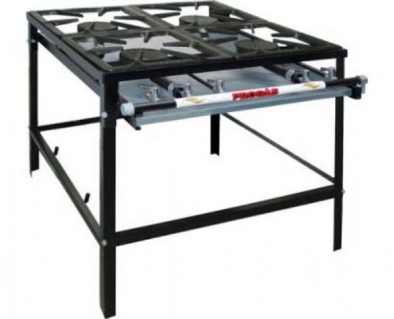 ProgasCARACTERÍSTICAS TÉCNICAS Estrutura em aço com acabamento em pintura epóxi na cor preta, desmontável; Perfil 3cm; Grelhas em ferro fundido; Queimadores diam. 100mm em ferro fundido com fixação através de encaixe; Registros semi-industriais, estágios contínuos; Bandeja coletora de gordura; Disponíveis em alta e baixa pressão; Opcional forno FSI-500