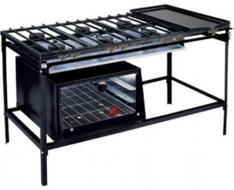 ProgasCARACTERÍSTICAS TÉCNICAS Estrutura em aço com acabamento em pintura epóxi na cor preta, desmontável; Perfil 3cm; Grelhas paralelas removíveis; Queimadores diam. 100mm em ferro fundido; Bandeja coletora de gordura; Disponíveis em alta e baixa pressão; Opcional Forno FSI-500