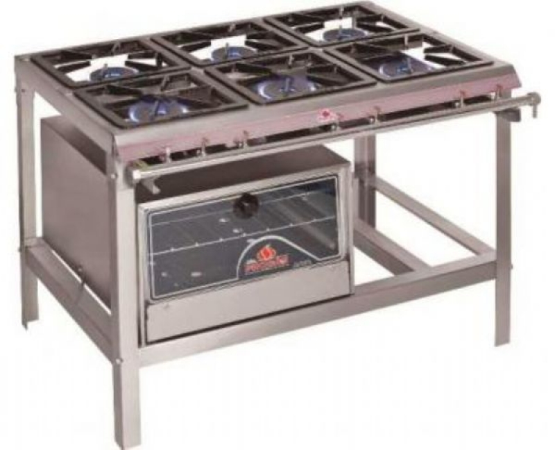 ProgasCARACTERÍSTICAS TÉCNICAS - Estrutura em aço inox escovado, desmontável e modulável; - Perfil 5cm reforçado; - Grelhas em material fundido 30 x 30cm; - Queimadores simples em material fundido chama dupla Ø 120mm, e queimador duplo Ø 160mm; - Registros de estágios contínuos; - Fogões de encosto (tubulação de um lado); - Forno FSI-680NI somente para fogões acima de 4 bocas.