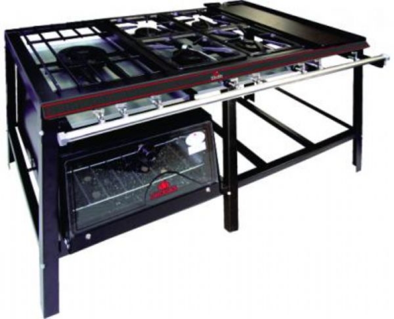 ProgasCARACTERÍSTICAS TÉCNICAS - Estrutura desmontável em aço com acabamento em pintura epóxi na cor preta; - Perfil 5cm; - Grelhas 30 x 30cm, removíveis; - Queimadores simples chama dupla Ø 120mm; - Registros industriais com estágios contínuos cromados; - Queimadores com fixação através de encaixe; - Bandeja coletora de gordura; - Fogões de encosto; - Forno FSI-500 para fogões de até 3 bocas e demais fogões, FSI-680, opcional FSP-6800; - O modelo PMS-110 N é modulável com todos os fogões da linha PMS e PMSD e possui queimador duplo de 200mm e grelhas paralelas removíveis de 375x655mm.