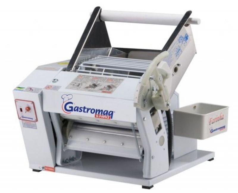 GastromaqCaracteristicas Sova e lamina massas. Possui sistema rápido de abertura e engrenagem em aço temperado. Especificações Técnicas CAPACIDADE: 4 Kg de massa por operação POTÊNCIA: 1/2 Cv monofásico CONSUMO: 0,37 Kw/h PESO: 43 Kg DIÂMETRO DO CILINDRO: 70 mm DIMENSÕES (AxLxC): 630x640x550m