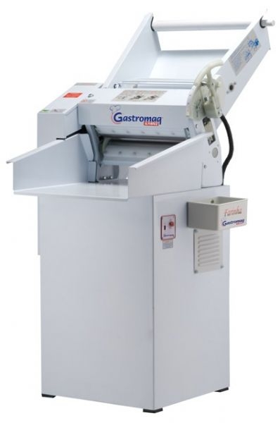 GastromaqCaracteristicas Os Cilindros da linha Gastromaq são equipados com escala graduada de 0,5 a 25 mm. Permitindo uma regulagem de laminação mais rápida e precisa. Os mecanismos em movimento são montados em eixo de aço SAE1045, sobre rolamentos de primeira linha com dupla blindagem, lubrificação permanente e engrenagens de aço temperado. Para maior segurança do operador, contam com o Cilindro Segurança localizado, aproximadamente no meio do funil. O Cilindro encontra-se a uma altura que permite a entrada da massa porém impede a aproximação das mãos do usuário até os cilindros laminadores devido a distância ideal em que o mesmo está montado. Acompanha caixa de farinha (trigo) localizado na lateral direita da maquina.A grade de proteção impede o acesso das mãos do operador junto aos cilindros laminadores, a não ser que haja necessidade de itervenção do mesmo. Situação em que se pode bascular a referida grade fazendo com que o micro interruptor deixe de ser pressionado, o que corta o fornecimento de energia elétrica para o motor do equipamento, bloqueado todos os movimentos do cilindro. Especificações Técnicas CAPACIDADE: 4 KG POTÊNCIA: 1,0 CV VELOCIDADE: 80 rpm CONSUMO:0,75 Kw/h PESO: 78 Kg DIMENSÕES (alt x larg x comp): 1240 x 780 x 860 mm DIÂMETRO DOS ROLOS: 70 mm