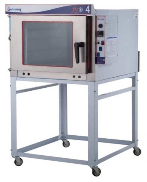 GastromaqCaracteristicas Fabricado nos em aço SAE 1020 revestido internamente com pintura alumínio (atóxica) e externamente com pintura epóxi branca. Possui a frente, porta e os suportes das bandejas fabricado em aço inox AISI 430. Sistema Turbo que através de uma hélice, circula o ar quente fazendo com que o pão asse uniforme, baixo consumo de Gás, acendimento automático, painel de fácil operação, com botões de acionamento para geral, motor e lâmpada. Controlador digital que emite alarme sonoro para avisar o término do assamento e controla a temperatura e o tempo de vapor desejado.Lâmpada de Halogênio interna que proporciona melhor iluminação da câmara interna, isolamento térmico com lã de rocha, cavalete desmontável com rodízios para facilitar a locomoção,possui porta inteiriça com vidro frontal que proporciona melhor visualização da câmara interna