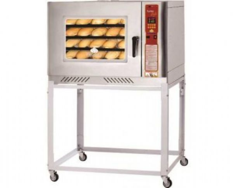 ProgasCARACTERÍSTICAS TÉCNICAS - Câmara interna com acabamento com pintura alta temperatura resistente a oxidação. - Estrutura em fino acabamento em aço carbono com pintura epóxi. - Acabamento frontal em aço inox escovado. - Porta com visor em vidro temperado. - Iluminação interna com proteção de vidro resistente a altas temperaturas e choques térmicos. - Isolamento interno com lã basáltica. - Novo painel de comando embutido com teclas de Programas, Receitas, Timer, Turbina, Lâmpada e Vapor, além de controlador digital para programar o tempo de cozimento, temperatura e vapor, possibilitando gravar em sua memória 10 receitas diferentes de acordo com o gosto de cada cliente. - Liga e desliga a turbina automaticamente ao abrir e fechar a porta. - Rodízios que facilitam o deslocamento. - Tensão 127-220v, 50/60Hz. - Baixo consumo de gás. - Disponível nas versões 5, 8, 10 e 12 esteira